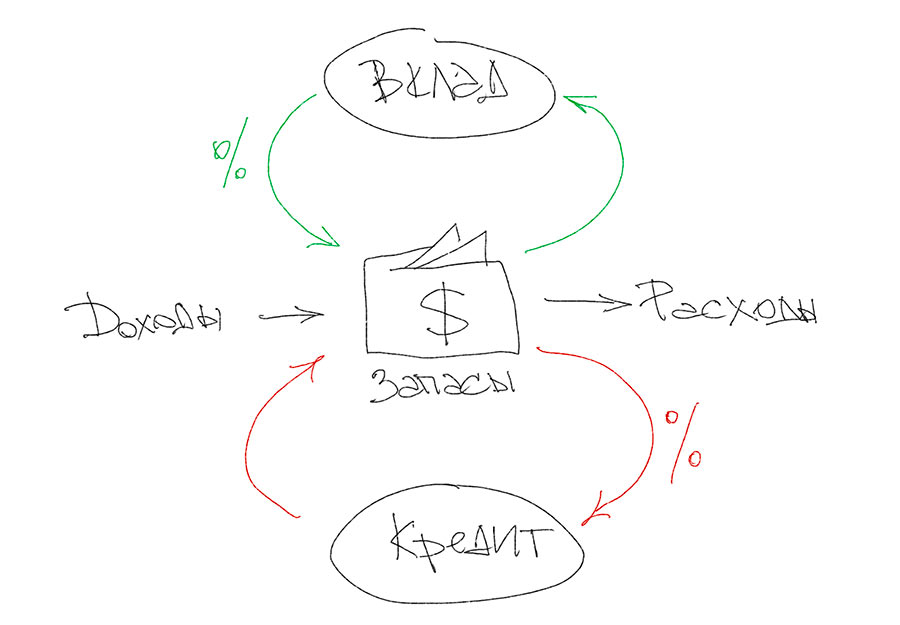 Простой пример: денежки в твоём кошельке — это запасы. Зарплата и счета на оплату — это входящие и исходящие потоки. Простой линейный процесс2. В учебных задачах у компании и государства линейное описание точно такое же.