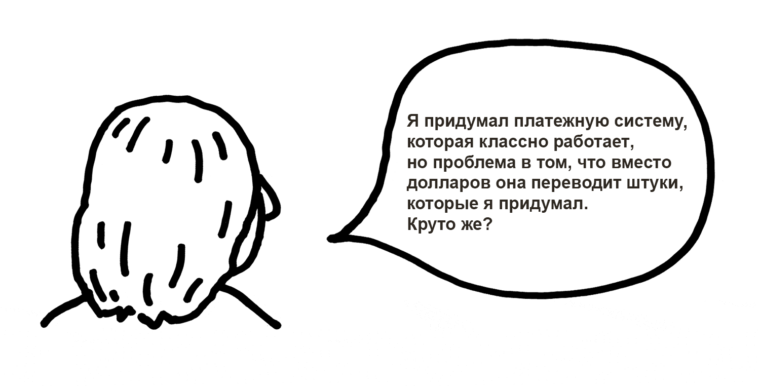 В самой технологии нет ничего, что могло бы это гарантировать. Люди могли прочитать белую бумагу Биткойна и сказать: «Вау, крутой способ платежей! Но проблема в том, что ты не пересылаешь доллары, ты пересылаешь какие-то выдуманные штуки. Кому они могут понадобиться?» И сначала так в основном люди и говорили. Но в какой-то момент люди решили, что пересылаемые Биткойны имеют ценность.